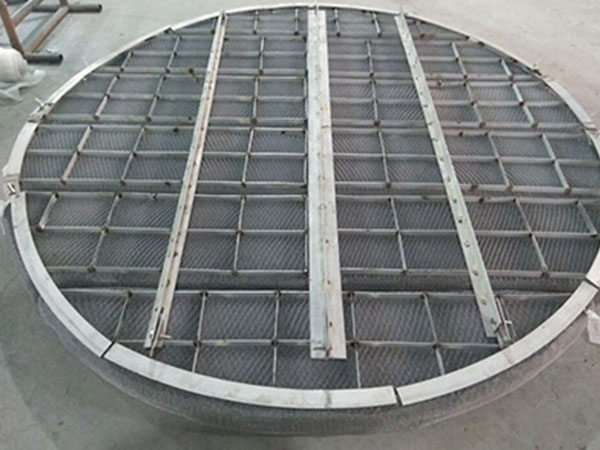 用壓有波紋的絲網制成各種規格尺度。絲網除霧器在國外有許多聞名廠商都有系列產品針對不同范疇。其效果機理為:夾藏在氣相中的細微液體霧滴,通過絲網除霧器的絲網時,霧滴碰到除霧絲網上,被粘附或吸附下來,通過重復屢次吸附霧滴,極小的霧滴附聚、聚結成為大的液滴,液滴在重力的效果下,沿著織造絲網絲與絲的交叉點向下運動。