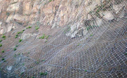 作業面排水系統得設置是否恰當和合理直接關系到作業面植被的生長環境,對于長、大邊坡,坡頂、坡腳以及平臺均需要設置排水溝。并根據作業面水流量的大小考慮是否設置坡面排水溝。采用高鍍鋅棱形鐵絲網或高強塑料加強土工網,網孔規格為5cm×5cm.巖石處用風鉆或電鉆按1×1m間距梅花形布置錨桿和錨釘。錨桿長90-100cm.錨釘長約15-40cm.掛網施工時采用自上而下放卷,相鄰兩卷鐵絲網(土工網)分別用綁扎鐵絲連接固定,兩網交接處至少要求有10cm的重疊,錨釘每平方米不少于5只。網與作業面保持一定間隙,并均勻一致,.較陡巖面處,可用草繩按一定間隔纏繞在網上,以增加附著力,使客土厚度得到保證。掛網可以使客土基質在巖石表面形成一個持久的整體板塊。
